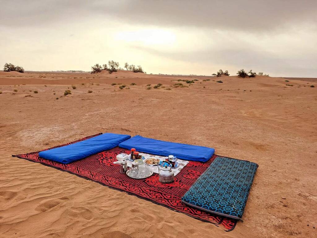 Déjeuner sous tente nomade au cœur du désert.
